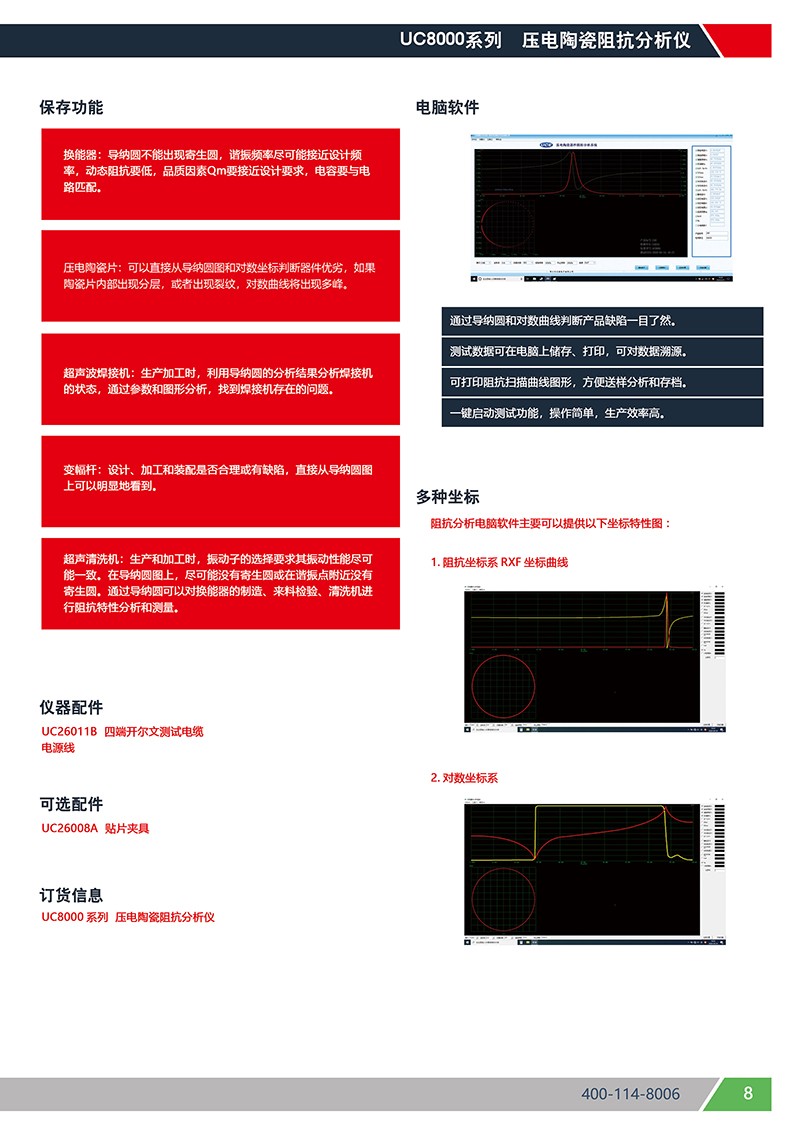 | 可以直接從導納圓圖和對數坐標判斷器件優(yōu)劣,如果陶瓷片內部出現分層,或者出現裂紋,對數曲線將出現多峰。 |